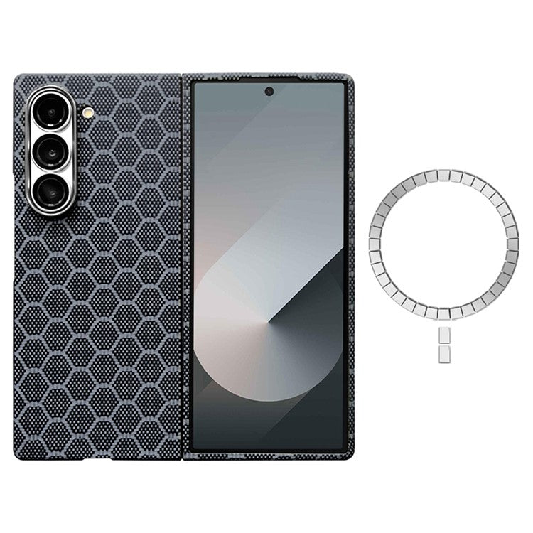 Aramid Fiber Honeycomb Texture MagSafe Case Black Phone Cover - For Samsung Galaxy Z Fold6