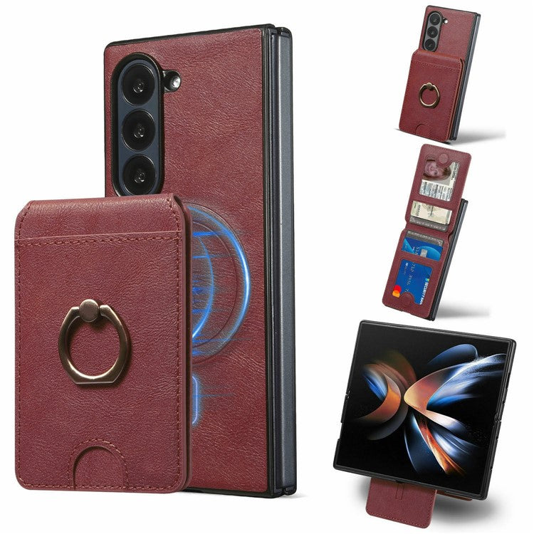 PC + PU Leather MagSafe Case Phone Back Cover with Detachable Card Holder - For Samsung Galaxy Z Fold6