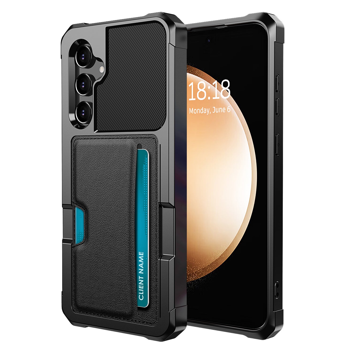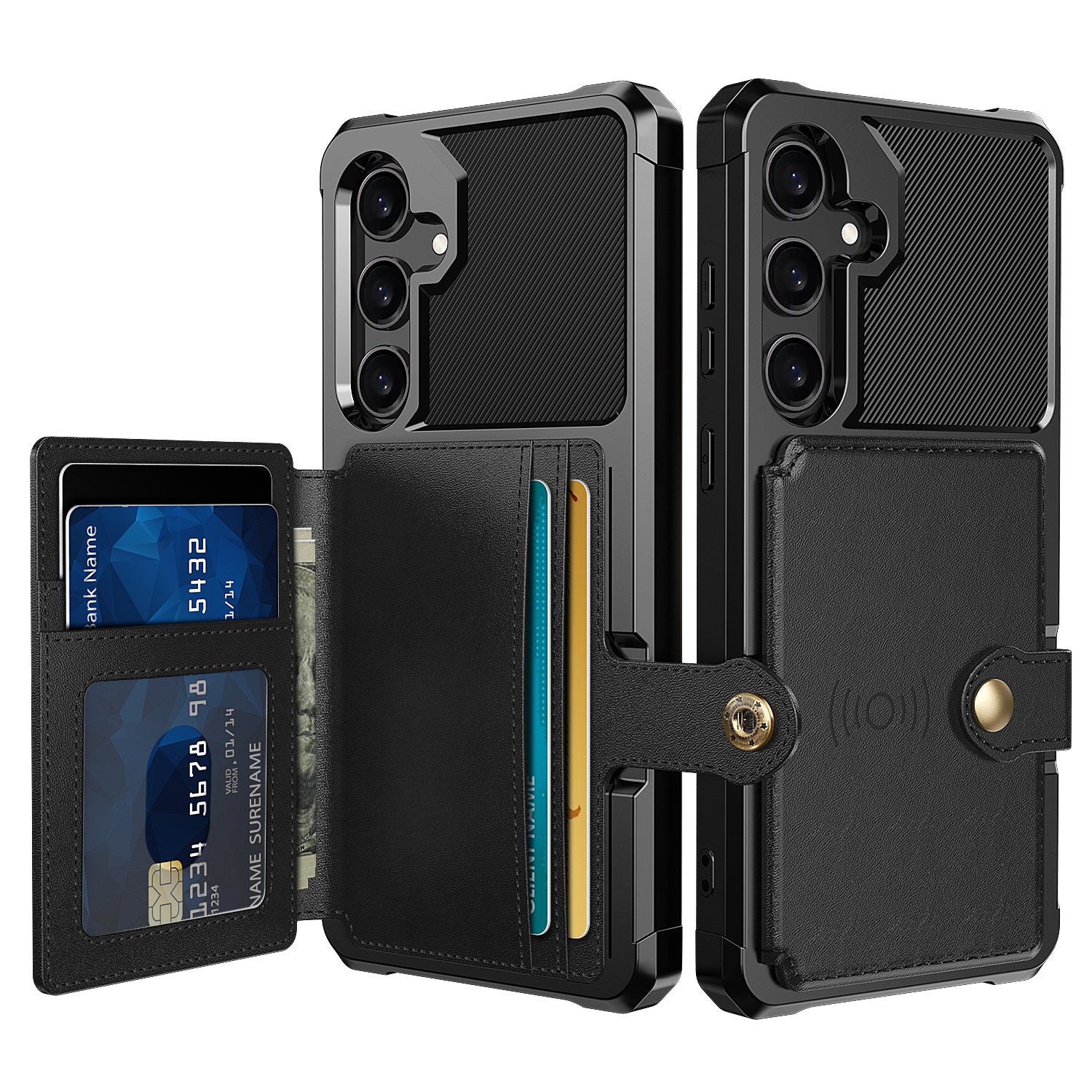 Card Slot Four Corner Drop Protection Black Phone Case - For Samsung Galaxy S24+