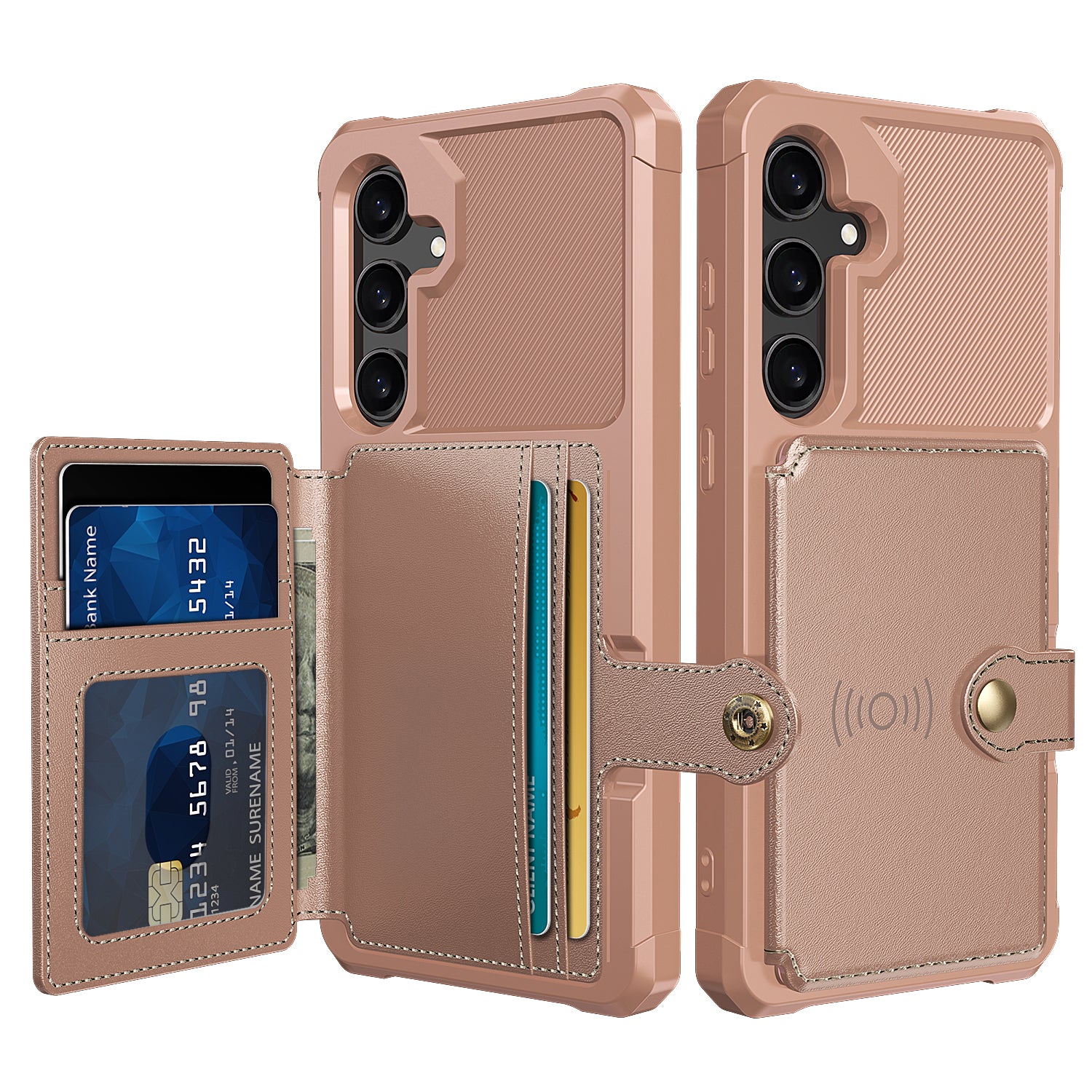 Soft TPU + PU Leather Card Slot Kickstand Pink Phone Case - For Samsung Galaxy S24