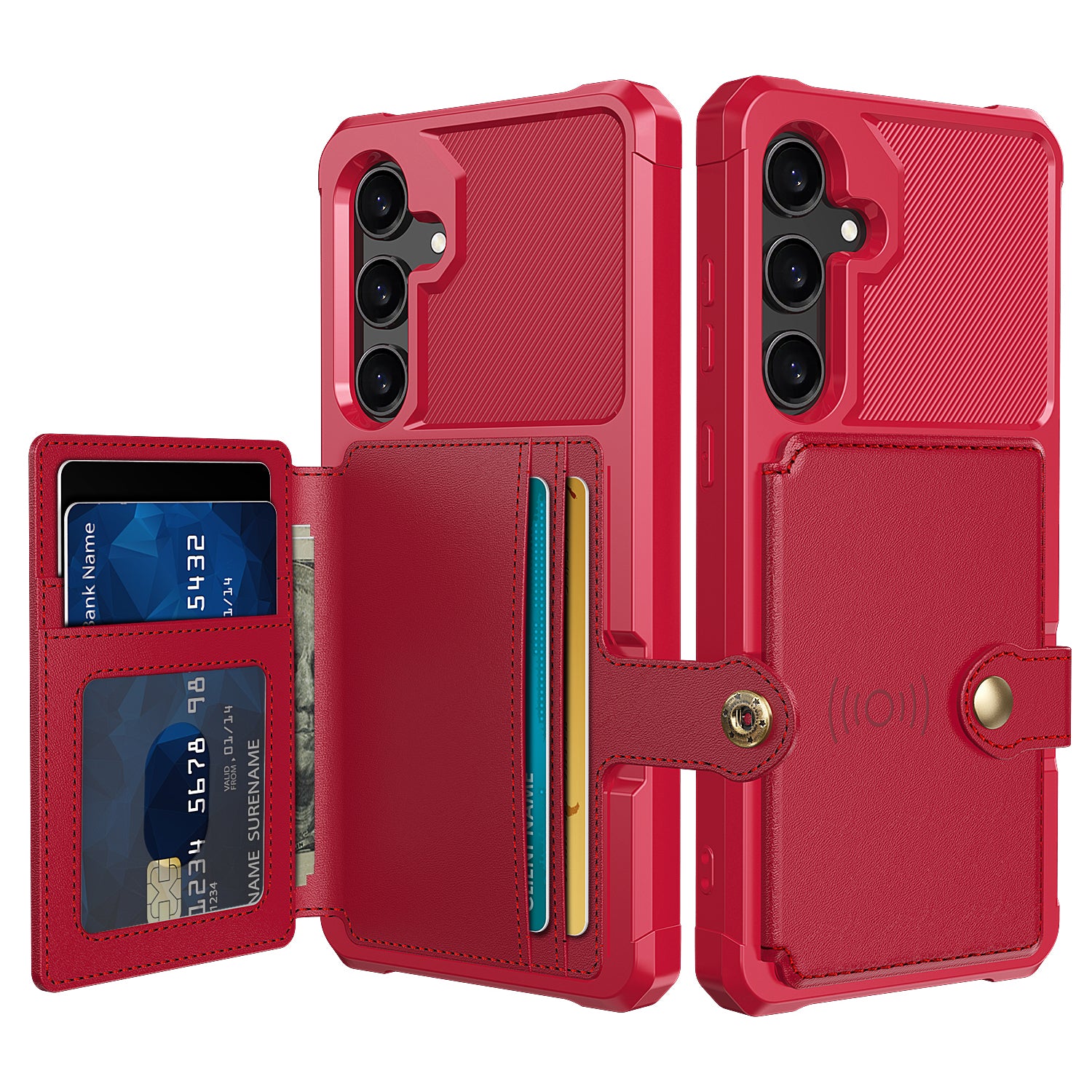 Soft TPU + PU Leather Card Slot Kickstand Red Phone Case - For Samsung Galaxy S24