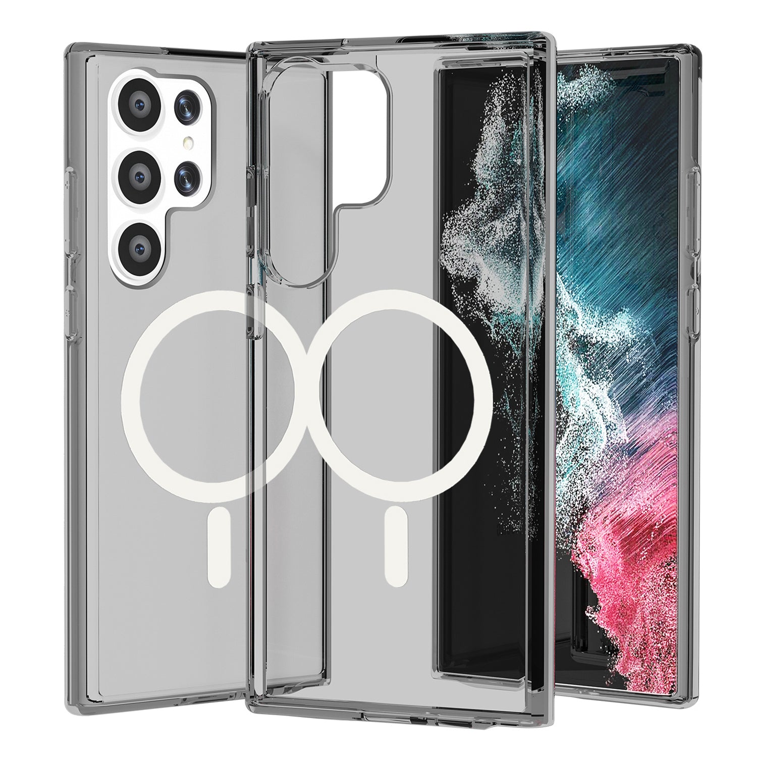 Magnetic Phone Case PC + TPU Scratch-proof Clear Back Cover - For Samsung Galaxy S24 Ultra