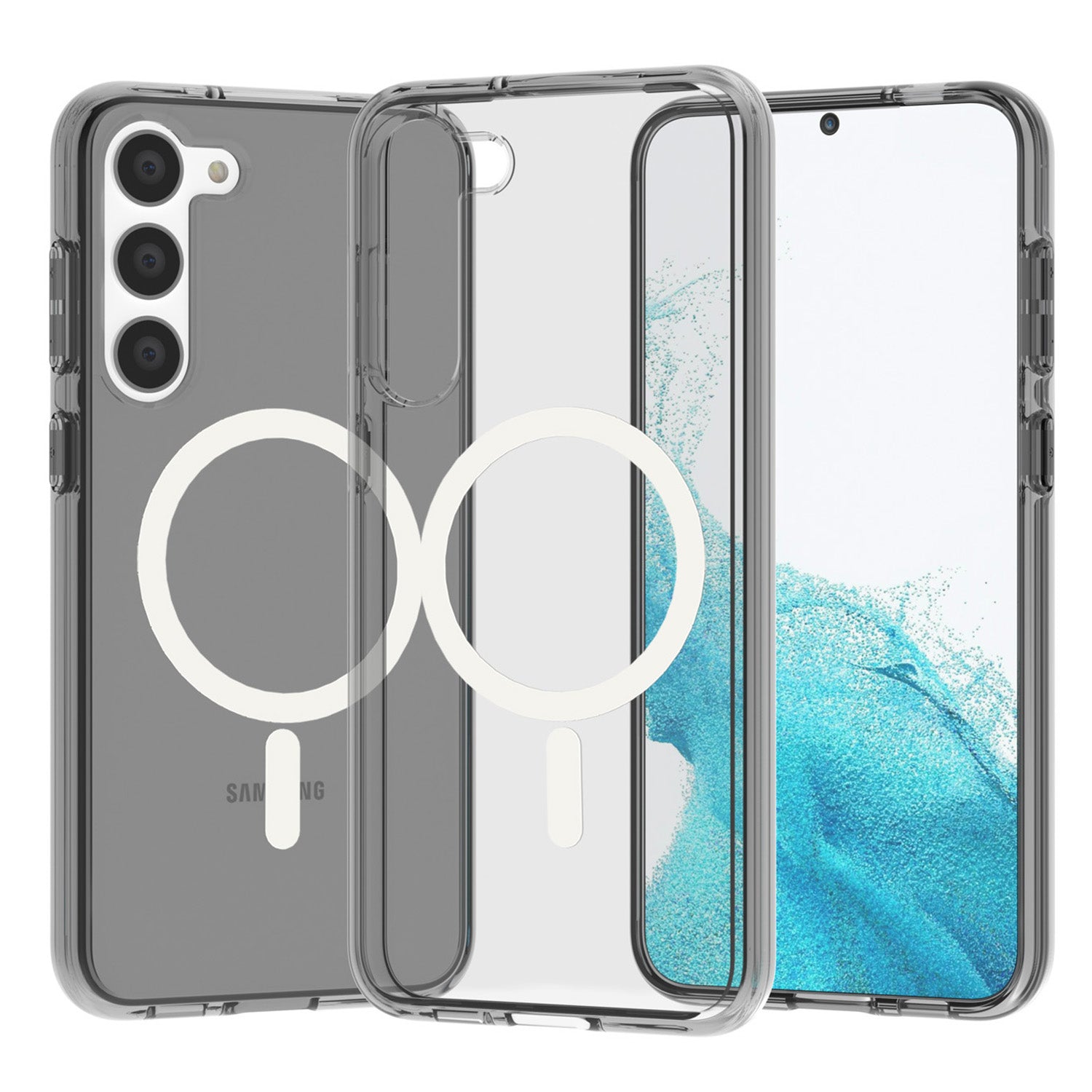 Magnetic Clear Black Phone Case Shell Hard PC Soft TPU Cover - For Samsung Galaxy S24