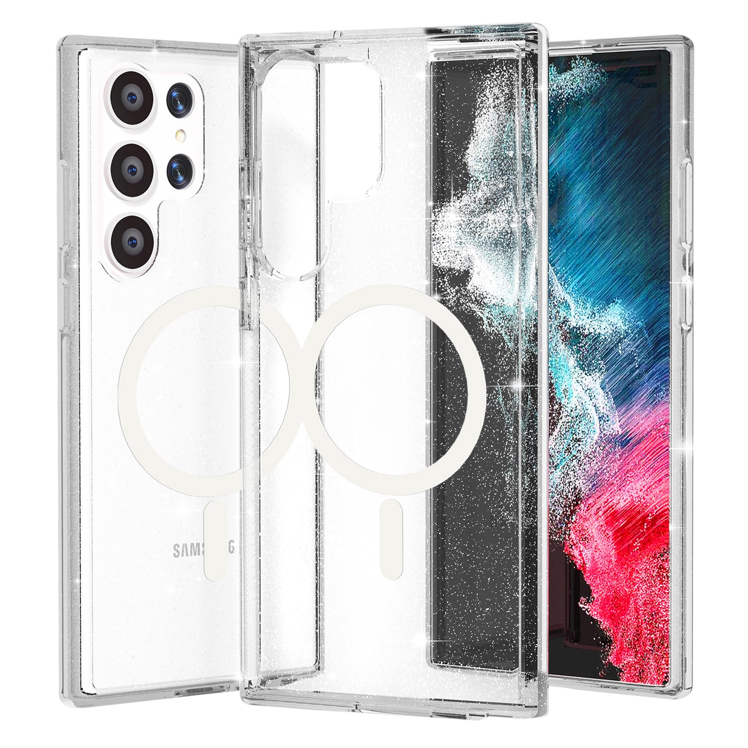 Magnetic Case Glitter Hard PC + Soft TPU White Phone Back Cover - For Samsung Galaxy S24 Ultra