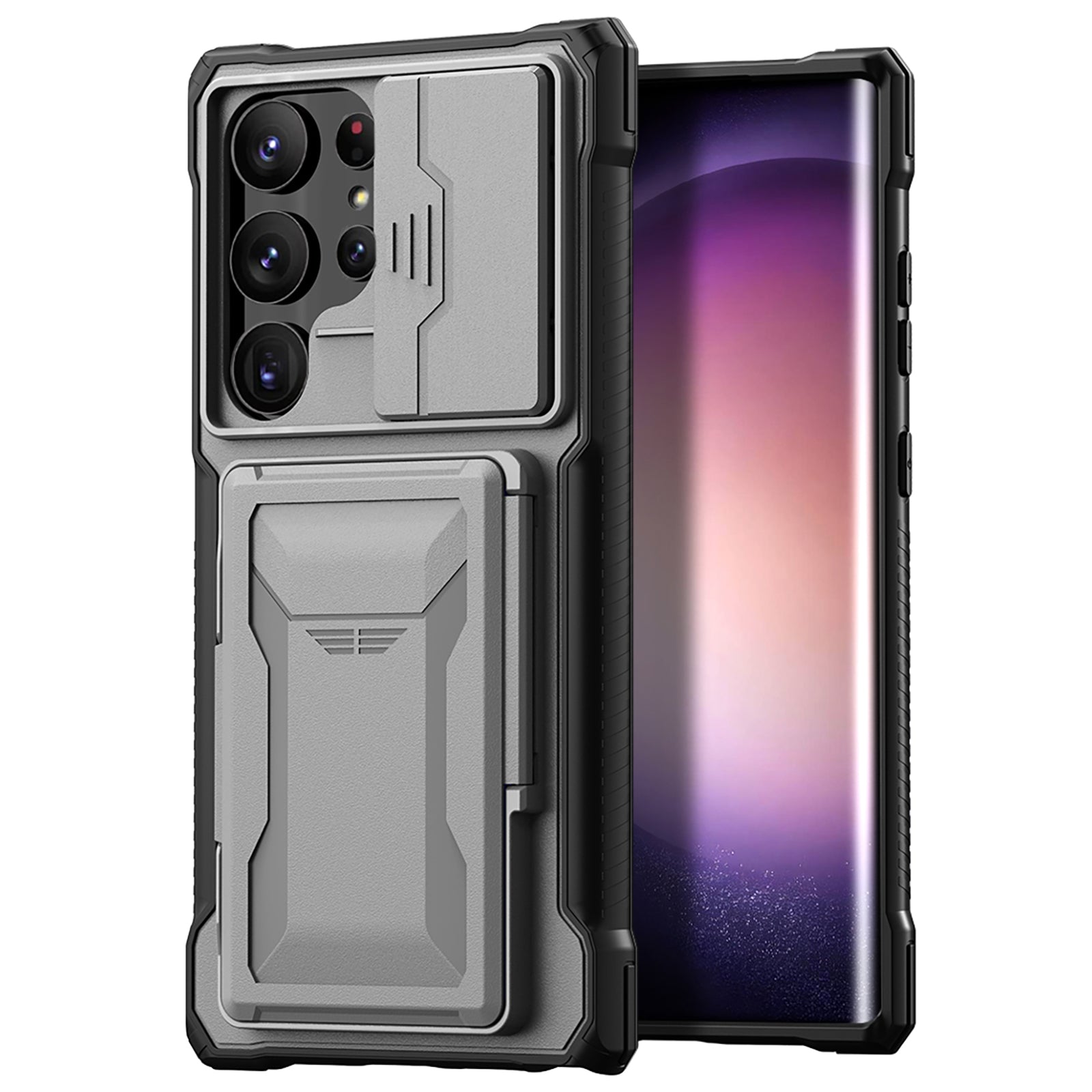 GKK Lens Protection Case Card Slot Kickstand Silver Phone Cover - For Samsung Galaxy S24 Ultra