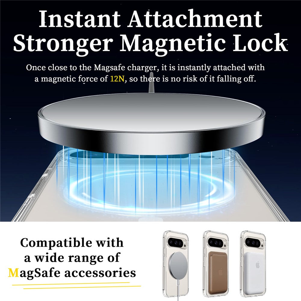 Keep your Google Pixel 10 and 10 Pro protected with this durable 2.0mm TPU and polycarbonate clear MagSafe case. Its slim design provides strong resistance against scratches and impacts while maintaining the phone’s sleek look. With MagSafe compatibility, you can easily attach and charge your device using MagSafe accessories without removing the case. Combining robust protection with convenient wireless charging, this case is the perfect accessory for your Pixel.