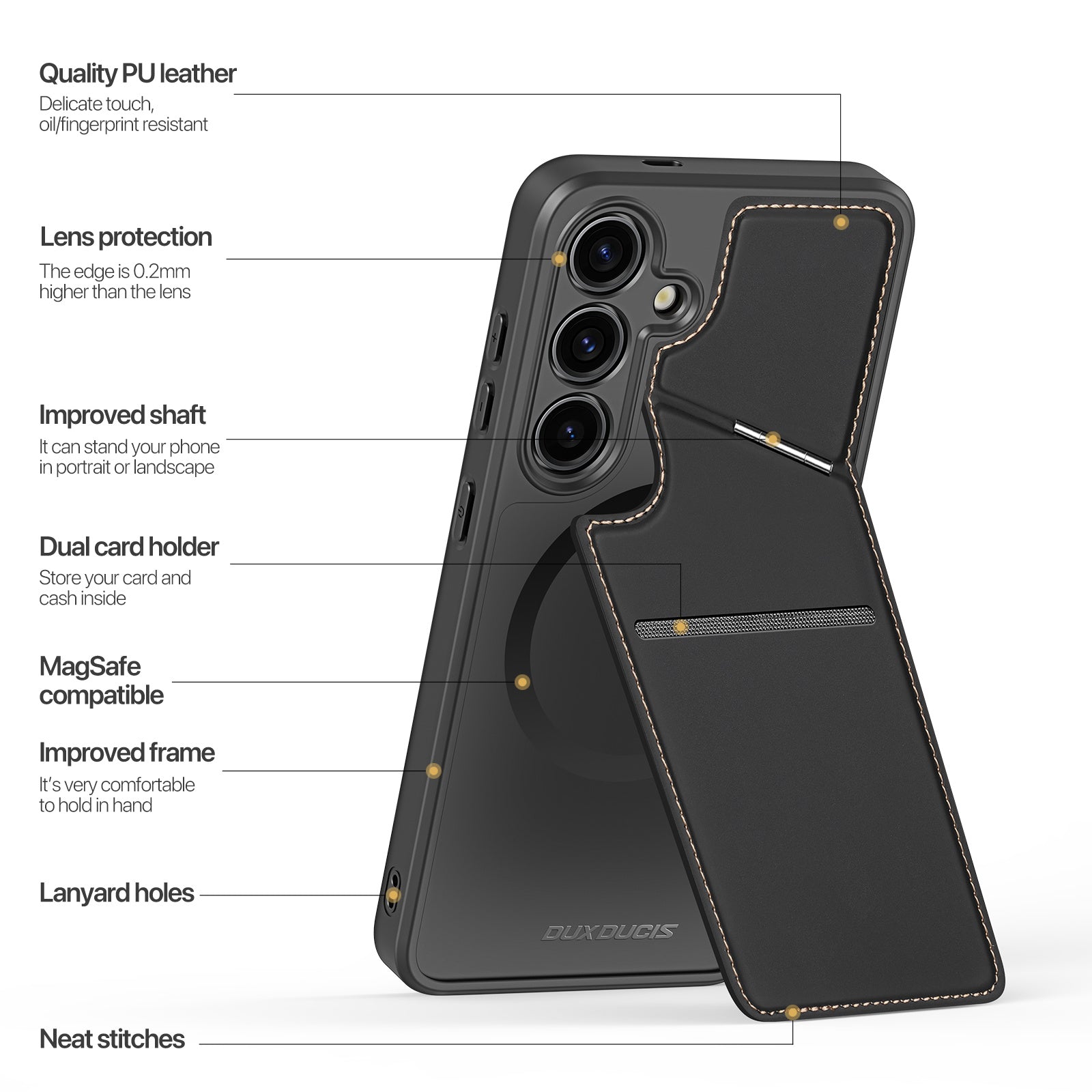 • Premium PU Leather Texture: Crafted from high-quality PU leather+TPU, this product boasts a fine texture and meticulous stitching. The touch is smooth and comfortable, while the appearance exudes sophistication and elegance