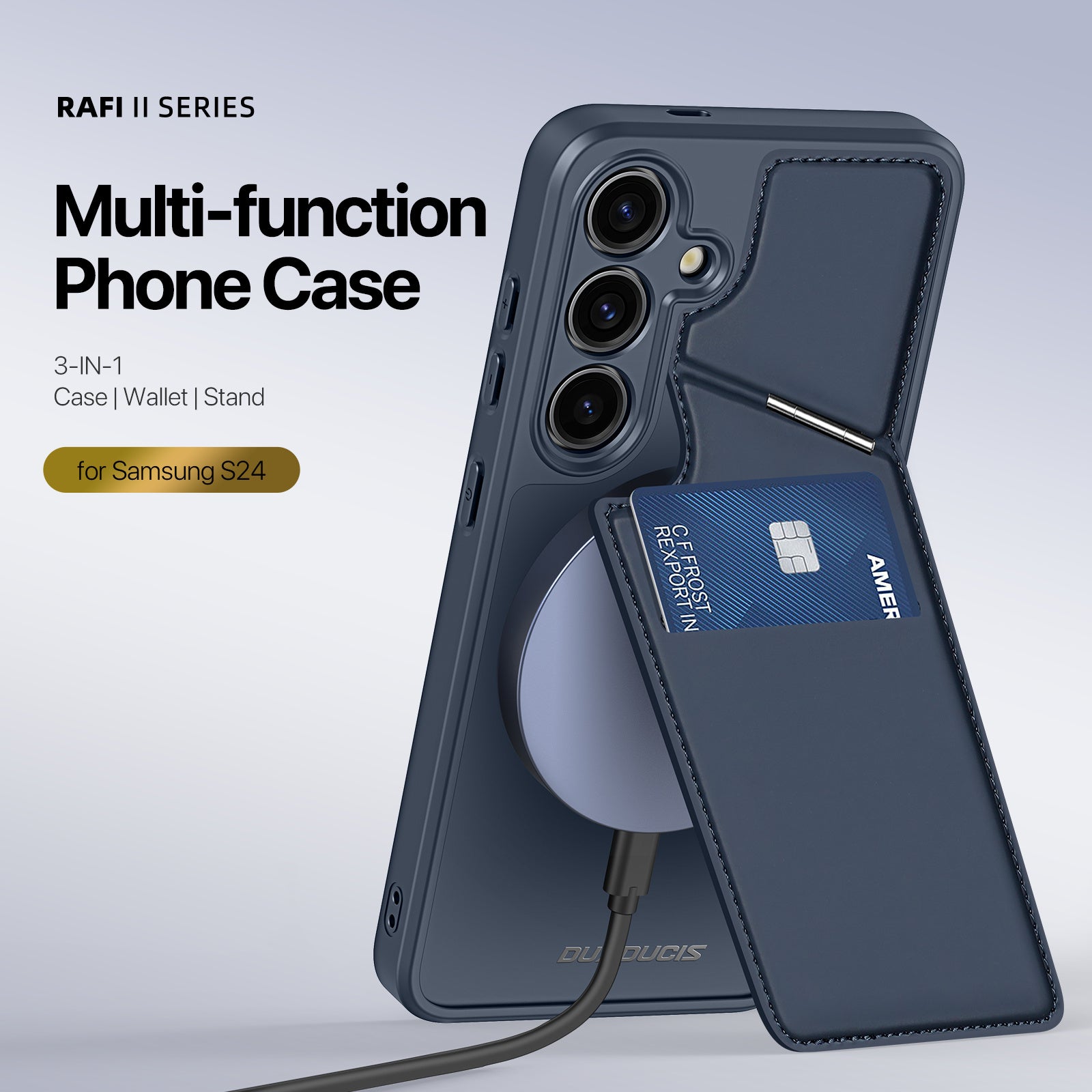 DUX DUCIS Rafi II Series RFID Case Card Holder Kickstand Blue Phone Cover - For Samsung Galaxy S24